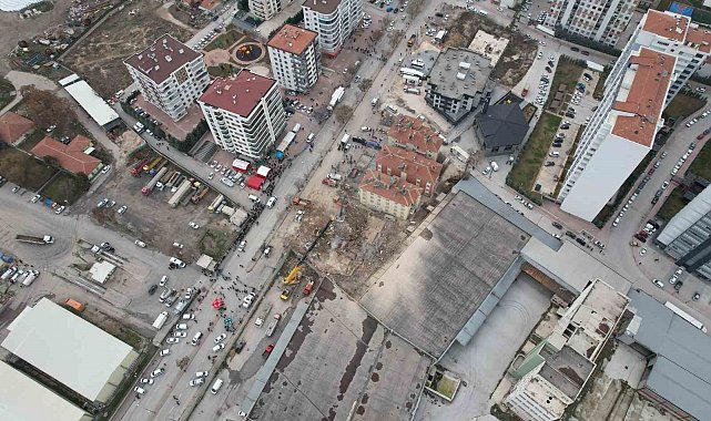 Konya'da çöken binadaki enkaz çalışmaları havadan görüntülendi