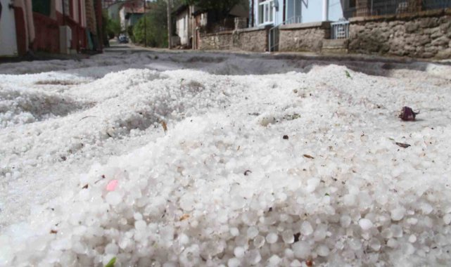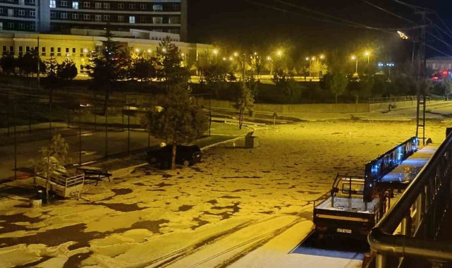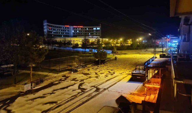 Konya'nın Beyşehir ilçesi doluya teslim oldu, dolu tanelerinin oluşturduğu yığınlar gece saatlerinde yolları ve açık alanları kaplayıp beyaza bürünmesine yol açtı.
