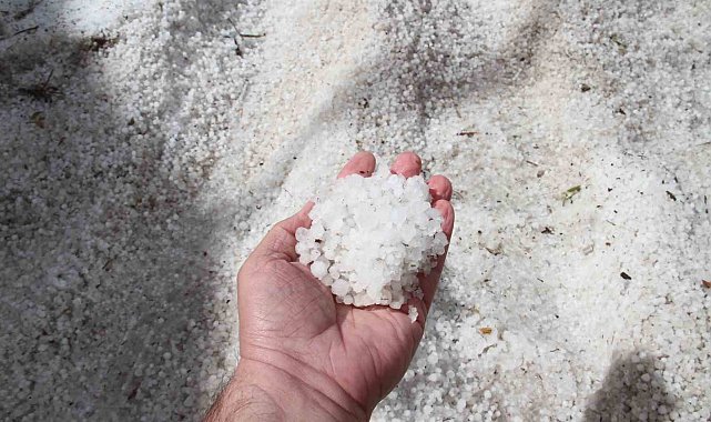 Konya'da dolu yağışı, yol ve açık alanlar beyaza büründü