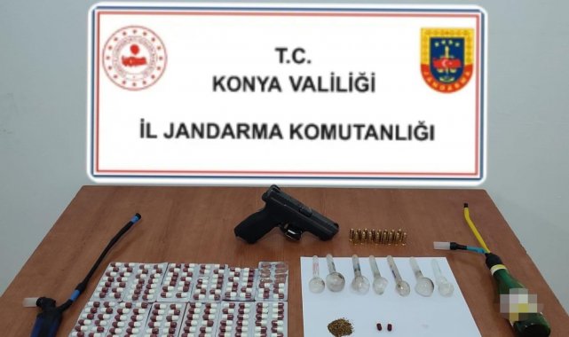Ekipler tarafından yapılan başka bir çalışmada ise Çumra ilçesinde 3 şahsın uyuşturucu madde ticareti yaptığı belirlendi. Bunun üzerine şahısların ikametlerinde arama yapan ekipler, 159 adet sentetik ecza hap, 1 gram kubar esrar, 1 gram metanfetamin, 7 adet bonk, 2 adet aparat, 1 adet ruhsatsız tabanca, 1 adet tabanca şarjörü, 16 adet 9 mm tabanca fişeği ele geçirildi. Ekipler tarafından gözaltına alınan 2 şahıs ifadesinin ardından serbest bırakılırken 1 şahıs tutuklanarak Konya Kapalı Ceza İnfaz Kurumuna teslim edildi.
