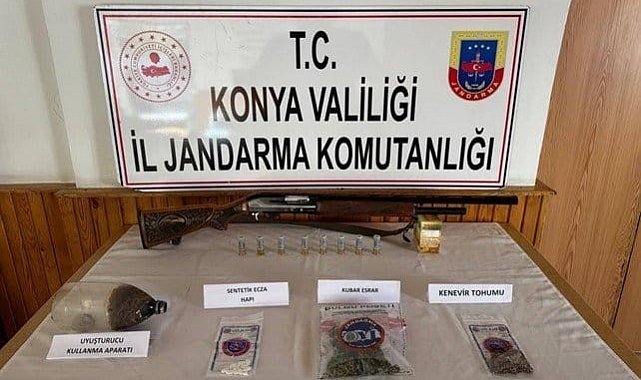 Edinilen bilgiye göre, 7-8-9 Ekim 2025 tarihlerinden Ereğli ve Çumra'da Jandarma KOM Şube Müdürlüğü, NSM Şube Müdürlüğü ve Ereğli İlçe Jandarma Komutanlığı ve Çumra İlçe Jandarma Komutanlığı ekiplerince yapılan istihbari çalışmalar neticesinde; 4 şahsın aracında ve ikametinde arama yapıldı. Operasyon sonucunda; 510 gram kubar esrar, 100 gram bonzai maddesi, 85 gram kenevir tohumu, 1 adet ruhsatsız av tüfeği, 8 adet av fişeği, 322 adet sentetik hap, 1 adet uyuşturucu kullanma aparatı, 11 adet tabanca fişeği, 4 bin 290 TL nakit para ele geçirildi. Operasyonlarda Ereğli'de gözaltına alınan 3 şahıstan 2'si serbest bırakılırken, 1 şüpheli çıkarıldığı mahkemece tutuklanarak cezaevine gönderildi. Çumra ilçesinde gözaltına alınan şahıs ise işlemlerinin ardından Cumhuriyet Başsavcılığı'na sevk edildi.