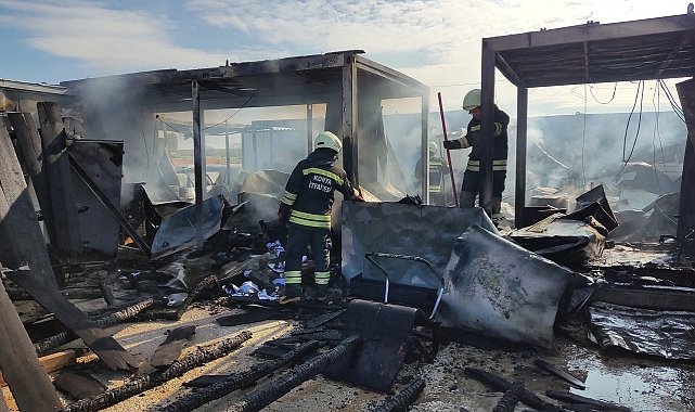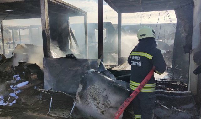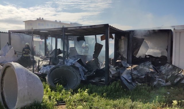 Konya'nın Kulu ilçesinde okul inşaatında bulunan işçilerin kaldığı ve malzemelerin koyulduğu 7 konteyner yanarak kullanılmaz hale geldi.