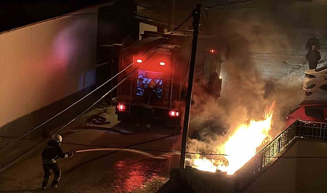 Konya'da park halindeki otomobil alev alev yandı