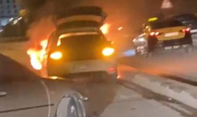 Konya'nın Karapınar ilçesinde seyir halindeki otomobilde yangın çıktı.