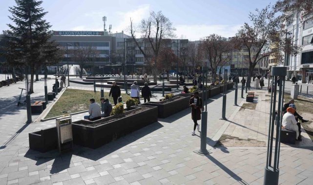 Kurak bir dönem yaşayan Konya'da, yaklaşık 2 hafta boyunca sıfır dereceye yakın hava sıcaklığının ardından şubat ortasında haftanın ilk günüde hava sıcaklığı yükseldi. Güneşli havada vatandaşların kimisi banklarda güneşlendi, kimisi de çarşıda güneşli havanın tadını çıkardı.