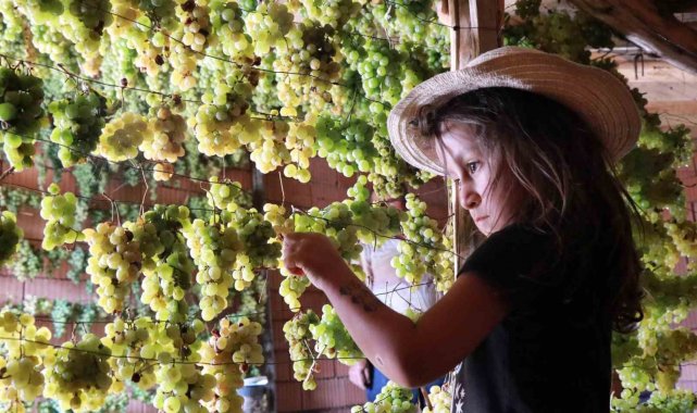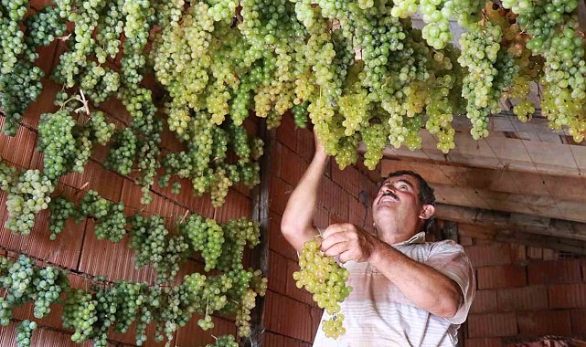 Gök üzüm taze olarak kilosu 100 lira civarında ilçede satışa sunulurken, yaklaşık 5 kilo yaş üzümden 1 kilo kuru üzüm çıkıyor.