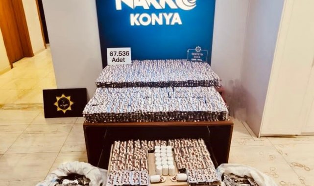 Edinilen bilgiye göre, Konya'da bir ayda yapılan çalışmalarda, 367 bin 211 adet sentetik ecza, 11 bin 627,10 gram bonzai hammaddesi (1 ton 744 kilo sentetik kannabinoid üretilebilir), 2 bin 729 adet captagon, 2 bin 16,23 gram skunk, bin 713,28 gram esrar, bin 104,55 gram sentetik kannabinoid, bin 31,87 gram kokain, 736,57 gram metamfetamin, 247,62 gram eroin, 105 adet 50 bin 768 kullanımlık peçeteye emdirilmiş sentetik kannabinoid, 48,5 adet ecstasy, 6 kök hint keneviri ile 12 adet hassas terazi, 1 adet ruhsatsız tüfek, 1 adet ruhsatsız tabanca, 2 adet fişek ele geçirildi.