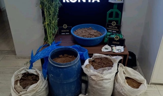 Konya'da zehir tacirlerine operasyon: 712 bin hap ve 65 kök kenevir ele geçirildi
