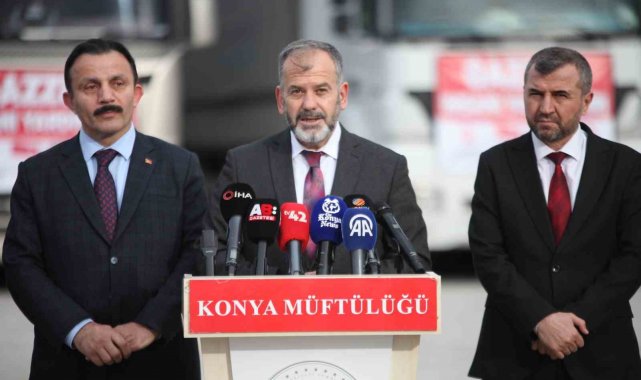 Konya'dan Gazze'ye ulaştırılmak üzere 15 tır insanı yardım malzemesi dualarla yola çıktı.