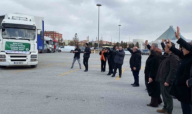 "Malatya'da Yuvalar Kuruyoruz" projesi çerçevesinde nikah ve düğünleri yapılacak olan depremzede 100 çiftin çeyiz yardımları Konya'dan Malatya'ya tırlarla yola çıktı.