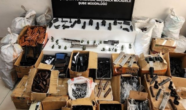 Konya'da polis ekiplerince düzenlenen operasyonda AK-47 kalaşnikof, G3, bixi, MG3, FN, doçka ve bomba atar gibi çeşitli silahlara ait toplam 8 bin 26 adet silah parçası ele geçirilirken, 1 kişi adliyeye sevk edildi.