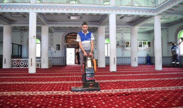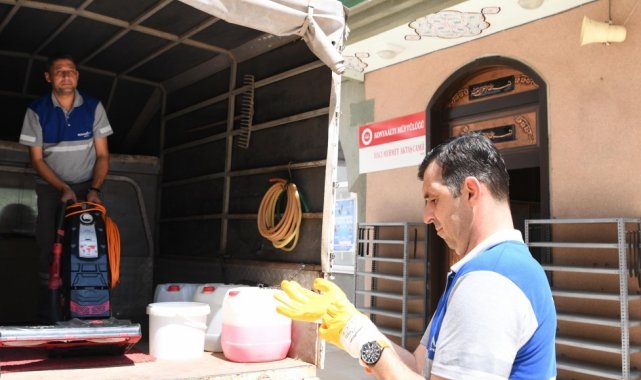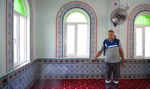 Konyaaltı Belediyesi, Kurban Bayramı öncesinde ibadethanelere gül suyu dökerek temizlik çalışması yaptı.