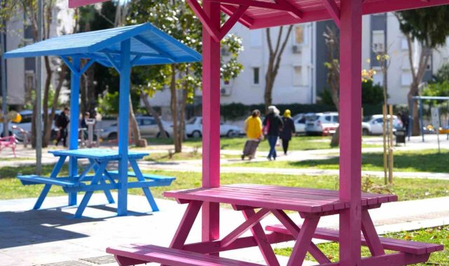 Konyaaltı Belediye Başkanı Cem Kotan'ın talimatıyla, parklarda ailelerin rahat bir şekilde vakit geçirebilmeleri için güvenlik kameraları takan Konyaaltı Belediyesi, şimdi de ilçede bulunan tüm bank ve oturma gruplarını farklı renklere boyuyor.