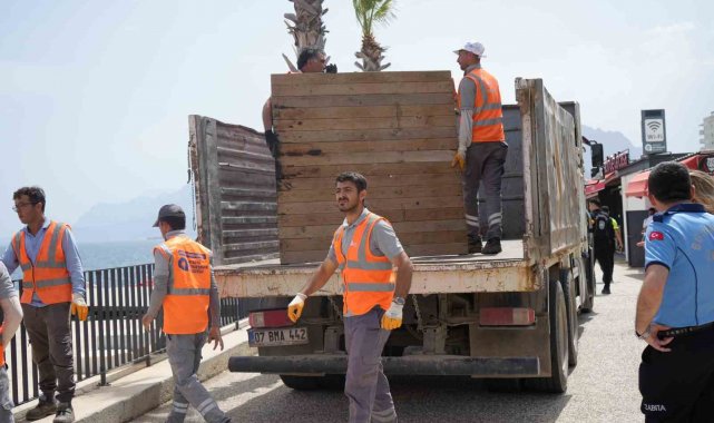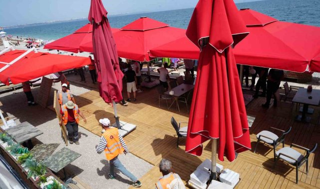 Antalya Büyükşehir Belediyesi, Konyaaltı Sahili'nde kıyı şeridinin halka açık kalması amacıyla başlattığı denetim ve müdahalelere devam ediyor. Sahil şeridinde Kıyı Kanunu ve Konyaaltı Sahili Alan Yönetimi Usul Esasları Yönetmeliği'ne aykırı olarak işletmeler tarafından oluşturulan yapıların kaldırılmasına yönelik daha önce Antalya Valiliği tarafından alınan karar doğrultusunda, belediye ekipleri 5 Mayıs akşamına kadar işletmelere süre tanımıştı.