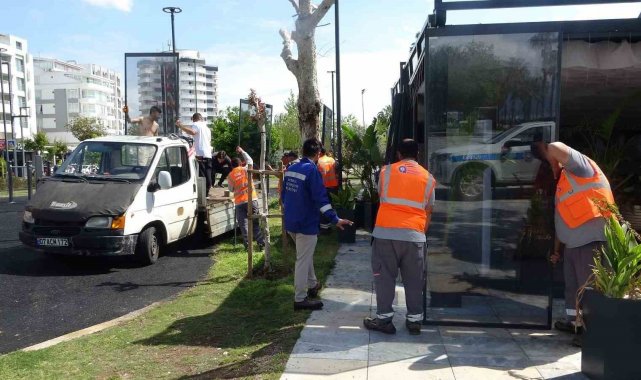 Antalya Büyükşehir Belediyesi, Konyaaltı Sahili'nde kıyı sınırlarını aşarak halkın plaj kullanımını kısıtlayan işletmelere müdahale etti. Kıyı Kanunu'na aykırı olarak dışa taşan bölümler kaldırılırken, işletmelere aykırılıkları gidermeleri için 5 Mayıs akşamına kadar süre tanındı.