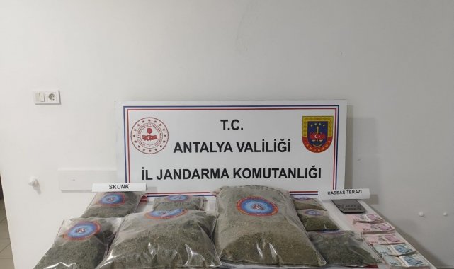 Elmalı ilçesinde de 2 şüphelinin evinde ve aracında yapılan aramalarda 1 kilo 185 gram skunk, 1 adet hassas terazi ve suçtan elde edilen gelir ele geçirildi.