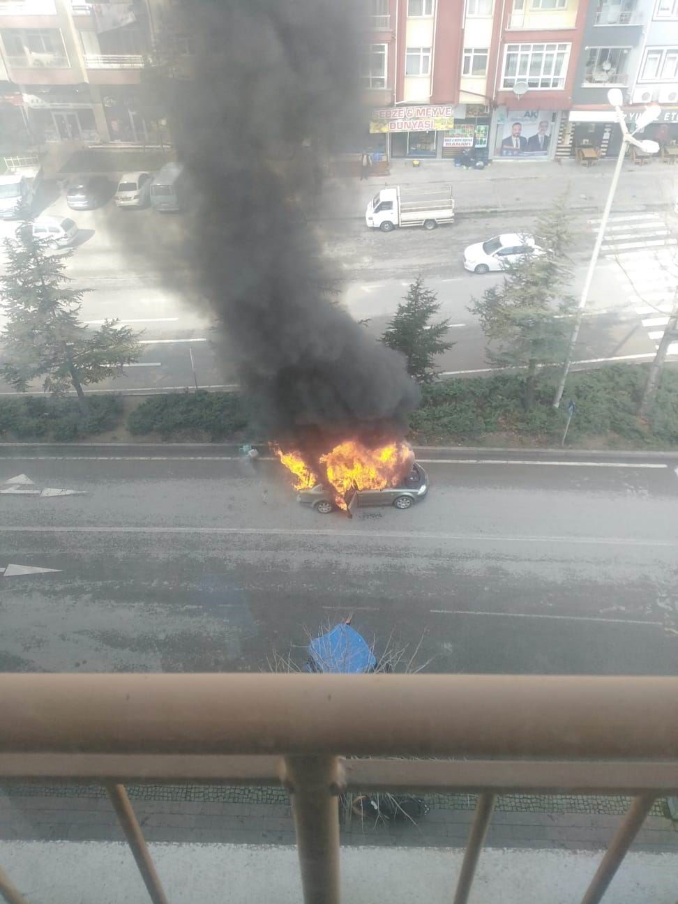 Konya'da LPG'li otomobil çıkan yangın sonrası alev alev yandı