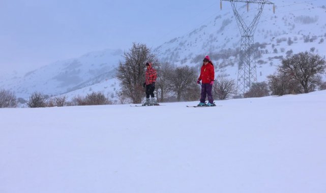 Öğrenciler okulların tatile girmesiyle birlikte Kop Kayak Merkezine akın ederken, düzenlenen kayak kursları ilgi görüyor.