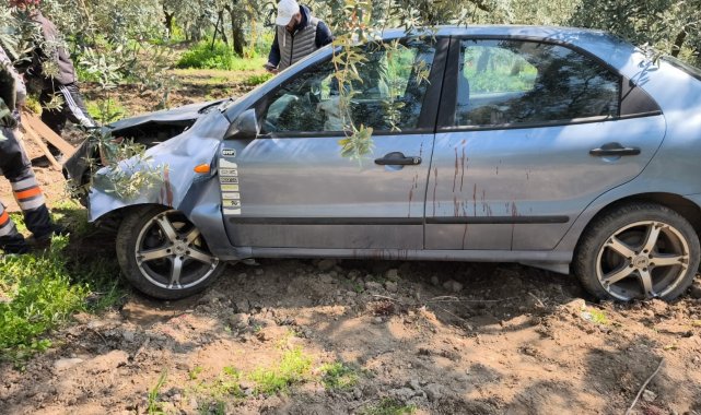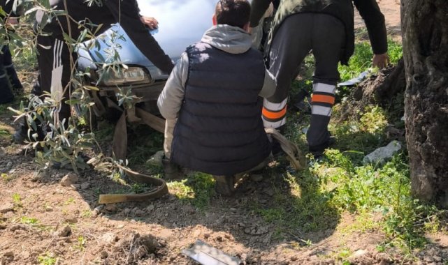 Bursa'nın Gemlik ilçesinde önüne çıkan köpeğe çarpmamak için manevra yapınca aracıyla zeytin tarlasına uçan sürücü yaralandı.