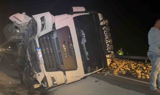 Kaza, Aksaray-Adana karayolunda yaşandı. Edinilen bilgiye göre, Konya'nın Karapınar ilçesinden 42 L 7695 plakalı tırına yüklediği pancarlarla Amasya'ya gitmek üzere yola çıkan Gökhan Çorakçı (41), Aksaray'a geldiğinde önüne çıkan köpeğe çarpmamak için manevra yaptı. Manevra yapan sürücü direksiyon hakimiyetini kaybederken, kontrolden çıkan tır refüje devrildi. Devrilen tırın dorsesindeki pancarların dökülmesiyle yol trafiğe kapandı. Kazayı gören diğer sürücüler durumu hemen 112 Acil Çağrı Merkezine bildirdi. İhbar üzerine olay yerine polis ekipleri sevk edildi. Kaza mahalline gelen ekipler yolda güvenlik önlemi aldı. Yaralananın olmadığı kazaya sebep olan köpek ise olay yerinden ayrılmadı.