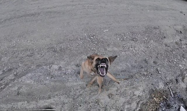 Sahada yapılan çekim sırasında dronu gören köpek, önce havlayarak tepki verdi, ardından havalanan cihaza ulaşmak için defalarca zıpladı. Dron operatörünün yükselttiği cihazı yakalayamayan köpeğin ısrarlı takibi saniye saniye kaydedildi.
