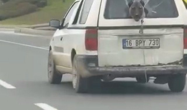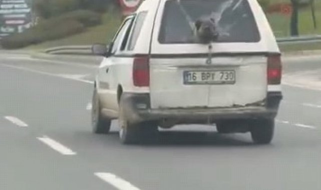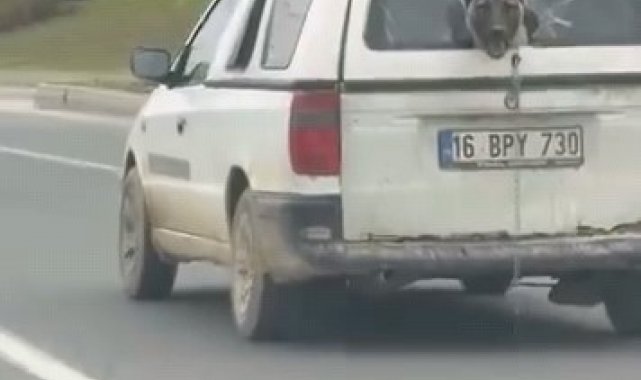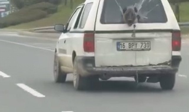 İlginç anlar, Bursa-Ankara karayolu üzeri İnegöl girişinde kayda alındı. Sürücüsünün ismi öğrenilemeyen kamyonetin arka camının kırık olduğu görüldü. Camdan başını dışarı çıkaran köpek, trafikteki diğer sürücülerin dikkatini çekti. Köpeğin rahat tavırları ve etrafı meraklı gözlerle izlemesi görenleri gülümsetti.