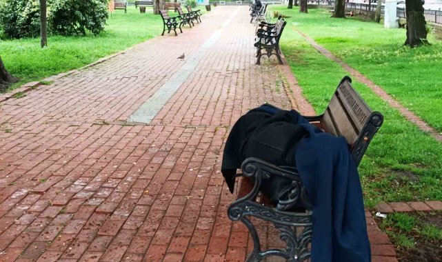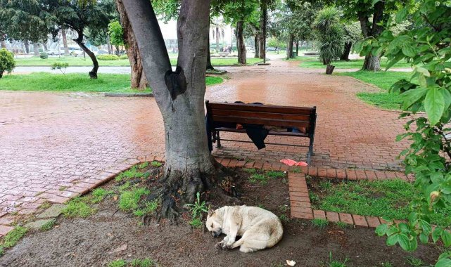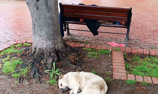 Köpeğin sadakati: Bankta uyuyan adamı yalnız bırakmadı
