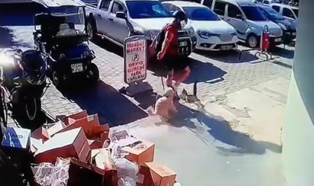 Antalya'nın Alanya ilçesinde motosikleti ve köpeğiyle iş yeri önüne gelen bir şahıs, köpeğiyle kavga eden kediyi tekmeledi. O anlar güvenlik kameralarına yansırken, jandarma ekipleri şahsı gözaltına aldı.