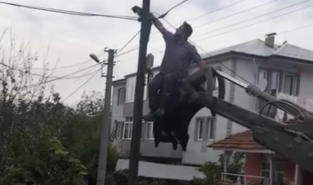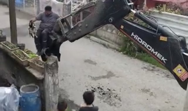 Olay, Karaca Mahallesi'nde meydana geldi. Sokak köpeklerinden kaçan bir kedi, tırmandığı telefon direğinden inemedi. Kedinin direkte mahsur kaldığını fark eden çevredeki vatandaşlar, durumu ilgili birimlere bildirdi. Bu esnada bölgede yol onarım çalışması yürüten Düzce Belediyesi Fen İşleri Müdürlüğü ekipleri, kediyi kurtarmak için çalışma başlattı. Ekipler, kepçeyi direğe yaklaştırdı ancak kedinin aşağı inmemesi üzerine bir personel kepçenin kovasına binerek direğe ulaştı. Personel, kediyi bulunduğu yerden alarak güvenli bir şekilde sokağa indirdi.