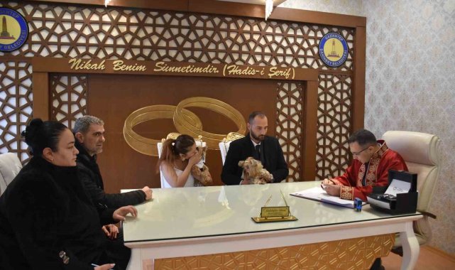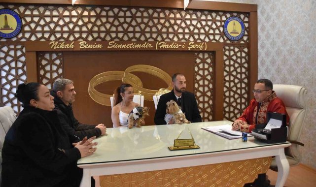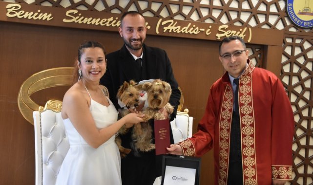 Hayatlarını birleştiren Dilek Öztürk ile Hakan Özbek, bugüne kadar benzerine rastlanmamış bir nikah töreni gerçekleştirdi. Nikah için Şahinbey Belediyesi Evlendirme Memurluğuna başvuran Dilek Öztürk ile Hakan Özbek, nikah salonuna gelinlik ve damatlık giydirdikleri Yorkshire teriyeri cinsi köpekleri ile geldi.