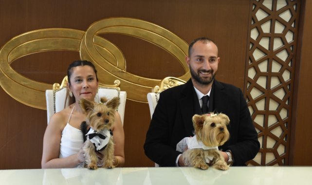 Üzerlerindeki gelinlik ve damatlıkla davetlilerin ilgi odağı olan köpekler, nikah bitimine kadar gelin ve damadın kucağından ayrılmadı. Nikah memuru Dilek Öztürk ile Hakan Özbek'in nikahını kıydıktan sonra gelinlik giyen "Betty" isimli köpeğe, damatlık giyen "Barney" isimli köpekle evlenmek istediğini sorunca "Betty" ve "Barney" birlikte havlayarak mutluluğa "evet" dedi.