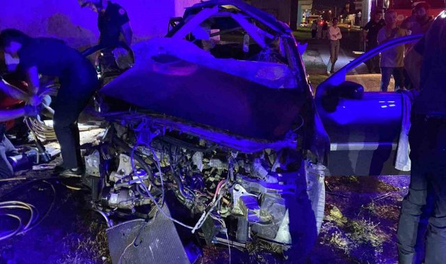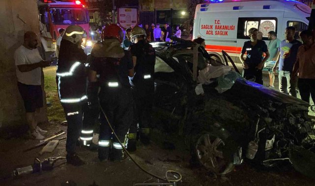 Köprü ayağına çarpan otomobil hurdaya döndü: 2 ağır yaralı