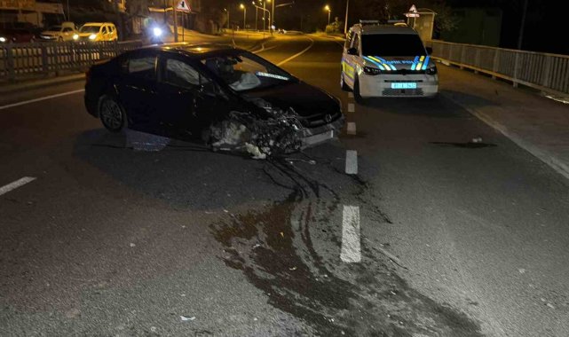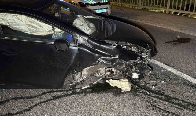 Köprü korkuluklarına çarpan otomobil hurdaya döndü: 3 yaralı