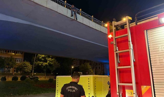 Kayseri'nin Kocasinan ilçesinde köprüden atlayarak intihar teşebbüsünde bulunan alkollü şahsı polis ikna etti.