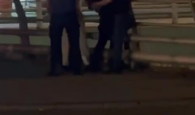 Köprülü kavşaktan kendisini atmak isteyen kadını polis engelledi