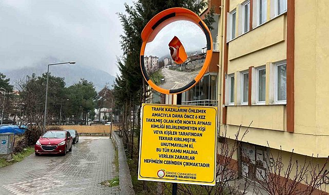 Amasya'da bir sokakta bulunan kör nokta aynası 7. defa kırıldı. Amasya Belediyesi, Şeyhcui Mahallesinde daha önce farklı günlerde kırılıp 6 defa yenilendiğini açıkladığı aynanın fotoğrafını sosyal medyada paylaşıp altına uyarı panosu astı.