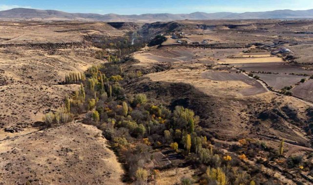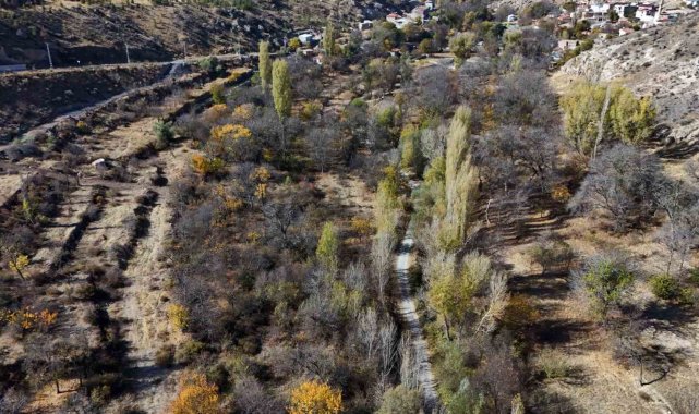 Kayseri'deki Koramaz Vadisi'nde sonbahar ile birlikte farklı renklere bürünen ağaçların oluşturduğu renk cümbüşü görenleri büyülüyor.