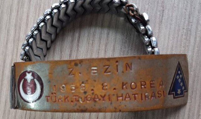 Koleksiyonun dikkat çeken unsurlarından biri olan madalyanın, Zihni Ezine'nin Kore Cephesi'nde verdiği hizmetin ve gösterdiği fedakârlığın somut bir nişanesi olarak öne çıkardığını belirten Özdemir, "Zamanın yıpratıcı etkisini taşıyan kurdelesi ve metal yüzeyindeki izler, bu madalyanın yalnızca bir ödül değil; savaş şartları altında verilen emeğin, sabrın ve fedakârlığın sessiz bir tanığı olduğunu gösteriyor. Üzerinde "TÜRK" ibaresi ve ay-yıldız bulunan askerî arma ise, Türk askerinin cephede taşıdığı kimliğin ve mensubiyet bilincinin güçlü bir sembolü olarak dikkat çekiyor. Üniformaya dikilerek taşındığı anlaşılan bu arma, binlerce kilometre uzaklıkta dahi Türk askerinin millî kimliğini muhafaza ettiğini ortaya koyuyor. En çarpıcı emanetlerden biri olan ve üzerinde "1957-1958 8. KORE TÜRK TUGAYI" ifadesi yer alan kırmızı zeminli sancak ise, Zihni Ezine'nin görev yaptığı tugayın Kore'deki hizmet dönemini doğrudan belgeleyen nadir bir hatıra niteliği taşıyor. Ay-yıldızlı bu sancak, Türk askerinin yalnızca bir askerî güç olarak değil; aynı zamanda bayrağını, değerlerini ve tarih bilincini cepheye taşıyan bir temsilci olduğunu gözler önüne seriyor" diye konuştu.