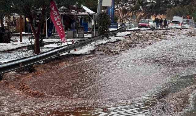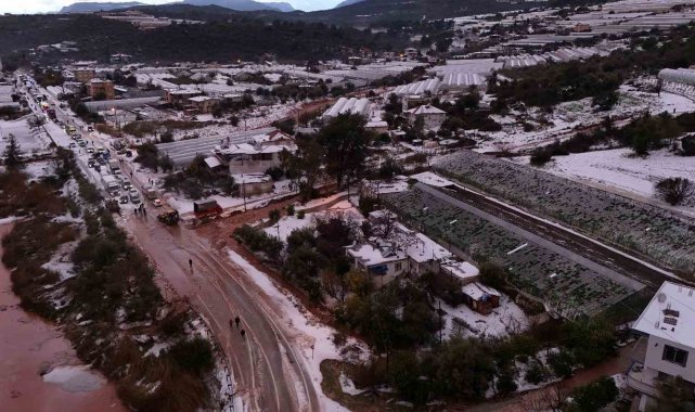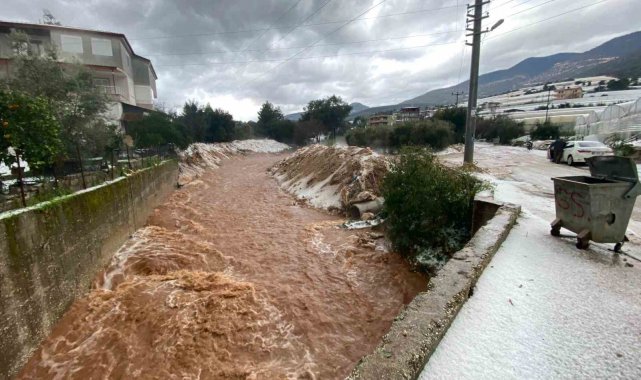 Antalya'nın Demre ilçesinde etkili olan dolu seralara zarar verdi, şiddetli yağış sele neden oldu. Dolu ve sel nedeniyle yollar ulaşıma kapanırken, denize akan çamur nedeniyle Demre sahilleri kızıla boyandı.