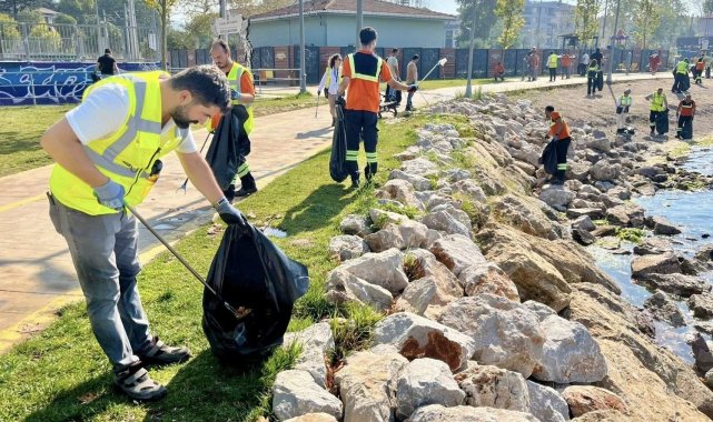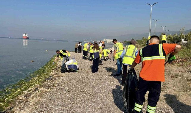 Körfez Belediyesi ekipleri ve gönüllülerin katılımıyla Yarımca sahilinde yapılan kıyı temizliği etkinliğinde, yarım saat içinde 70 kilogram atık toplandı.