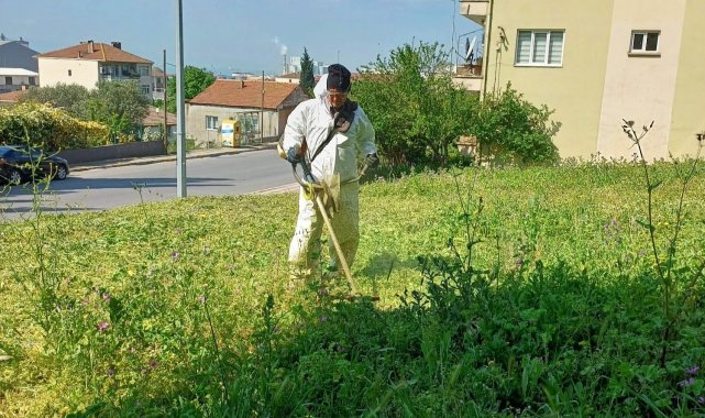 Körfez'de parklar, bahçeler ve yeşil alanlarda çalışma yapılarak yabani otlar temizleniyor.