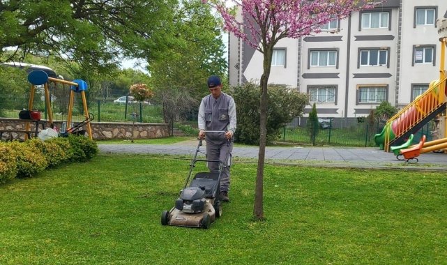 Bahar aylarının gelmesiyle birlikte ilçe genelinde yabani otlarla mücadele eden ve düzenli olarak çim biçme işlemleri gerçekleştiren Körfez Belediyesi Park ve Bahçeler Müdürlüğü ekipleri, parkların bakımını da sürdürüyor.