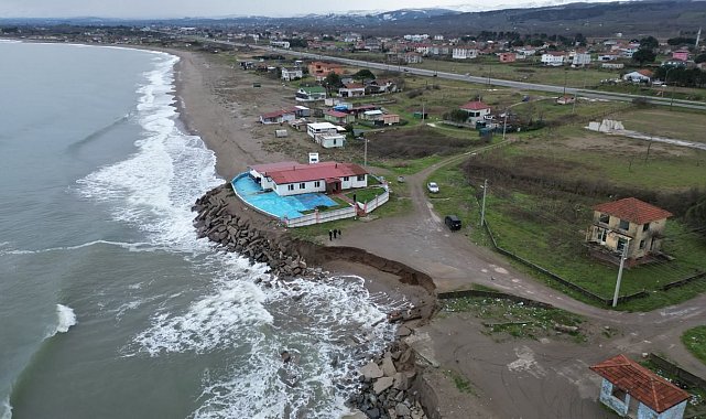 Sakarya'nın Karasu ilçesinde meydana gelen kıyı erozyonu neticesinde Karadeniz'e kıyısı olan arsanın istinat duvarı yıkıldı. Bir günde yaklaşık 50 metre içeri giren deniz, bölgede bulunan taşınmazlar için de tehdit oluşturdu.