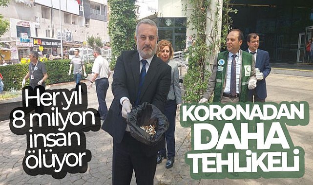 Tekirdağ İl Sağlık Müdürü Kalkan yaptığı açıklamada, “Görüyorsunuz izmaritler selüloz, asetat içeriyor. Doğada 5-10 yıl içerisinde bozulmadan kalıyor. Toprağımızı, suyumuzu, havamızı kendimiz zehirliyoruz. İçtiğimiz her yere atarak bu zararı kat be kat artırıyoruz. Bunlara artık bir dur demeliyiz. Özellikle hastane önlerinde vatandaşlarımızın sigara içmemeleri ve bu kadar yayılma özgürlüğümüzün olmadığını düşünüyorum. Özgürlük bir başkasına zarar vermeye başladığımız yerde özgürlük değildir. Tütün ve tütün ürünlerinin geleceğimizi, gezegenimize ne kadar büyük zararlar vererek, ölümcül bir zarar verdiğini burada hep birlikte anlatmak, paylaşmak için bir araya geldik. Dünyada 1 milyar 300 milyon civarında tütün ve tütün ürünleri kullanımı gerçekleşmekte. Her yılda 8 milyondan fazla insan bu sebeple hayatını kaybetmekte. Ülkemizde de 100 binden fazla insan, tütün ve tütün ürünleri kullanımından maruziyet sonrası kalınan hastalıklar sebebiyle hayatını kaybetmekte. Düşünün Süleymanpaşa ilçemiz 200 bin küsur nüfusa sahip ve iki yılda bir Süleymanpaşa'yı kaybediyor ülkemiz. Bu oranda ciddi bir zarar söz konusu hem çevremize hem insanımıza, doğaya verdiği zararlar anlatılmakla bitmeyen bir hadiseyle karşı karşıyayız. Covid sebebiyle biliyorsunuz 3 yıla yaklaşık bir sürede dünyamızda, Dünya Sağlık Örgütünün verilerine göre 6,6 milyon insan hayatını kaybetti. Ama sigaradan her yıl 8 milyon insan hayatını kaybetmekte. Çok daha önemli bir şey söyleyeyim, pasif içiciliğe maruz kalanlar 1 milyon 200 bin civarında da her yıl bu sebeple ölümler olmakta ve bunların 65 bininin çocuklar olduğunu bilmekteyiz. Bununla beraber şunu da hatırlatmalıyız ki, o izmaritler içip de toprağa, suya, denize attığımız izmaritler. Özellikle her yıl 1 milyondan fazla kuşun bu izmaritler sebepli öldüğünü bilmekteyiz. Balıklar, doğada, ormanda beslenen hayvanlar bütün bu zararlardan kendi çaplarında maalesef etkilenmekte. Tüm ülkemizde, ALO 171 hattının da bizde olması sebebiyle bunu biliyoruz, öncelikle sigarayı bırakma polikliniklerimize başvuran hastalarımızın yüzde 35 civarında olan kısmının sigarayı bıraktıklarını biliyoruz. Devam eden süreçlerde de bu oranı koruduklarını gözlemliyoruz” diye konuştu.