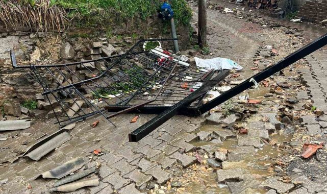 Aydın'ın Köşk ilçesine bağlı Sarıçam Mahallesi'nde etkili olan sağanak yağışın ardından çıkan şiddetli fırtına evlerde hasara neden oldu.