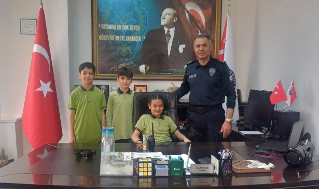 Temsili olarak makamlara oturan öğrencilerin talimatları, okul önü trafik güvenliği ve meyve fiyatlarının düşürülmesi yönünde oldu.