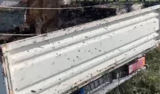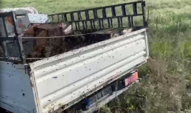 Kovan yüklü kamyonet devrildi, arılar etrafa yayıldı