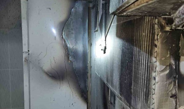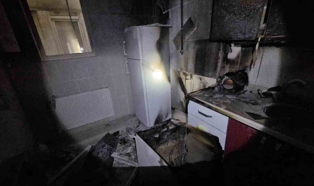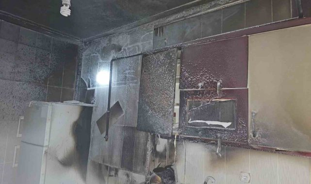 Yangın sonucu konutta maddi hasar meydana gelirken, olayla ilgili inceleme başlatıldı.