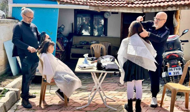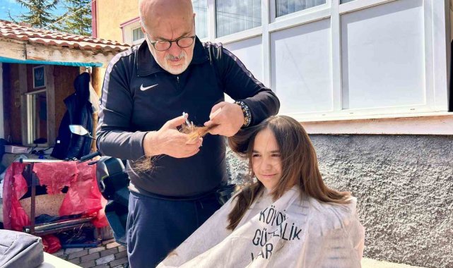 Köy köy gezen kuaför kız çocuklarının saçını ücretsiz kesiyor