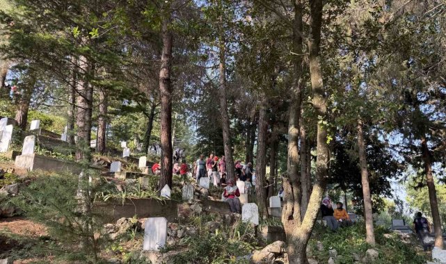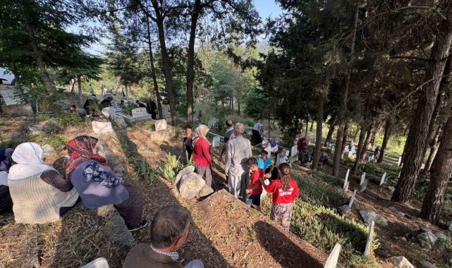Mersin'de bir köyde bayram arefesi nedeniyle mezarlıkta buluşan vatandaşlar, dua edip kabir ziyareti yaptı.
